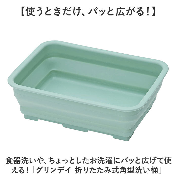 ・食器洗いや、ちょっとしたお洗濯にパッと広げて使える!「グリンデイ 折りたたみ式角型洗い桶」