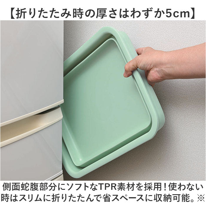 ・ご使用後はスリムに折りたたんで、水切りカゴに立て掛けたり、洗濯機横の隙間スペースに収納可能。
