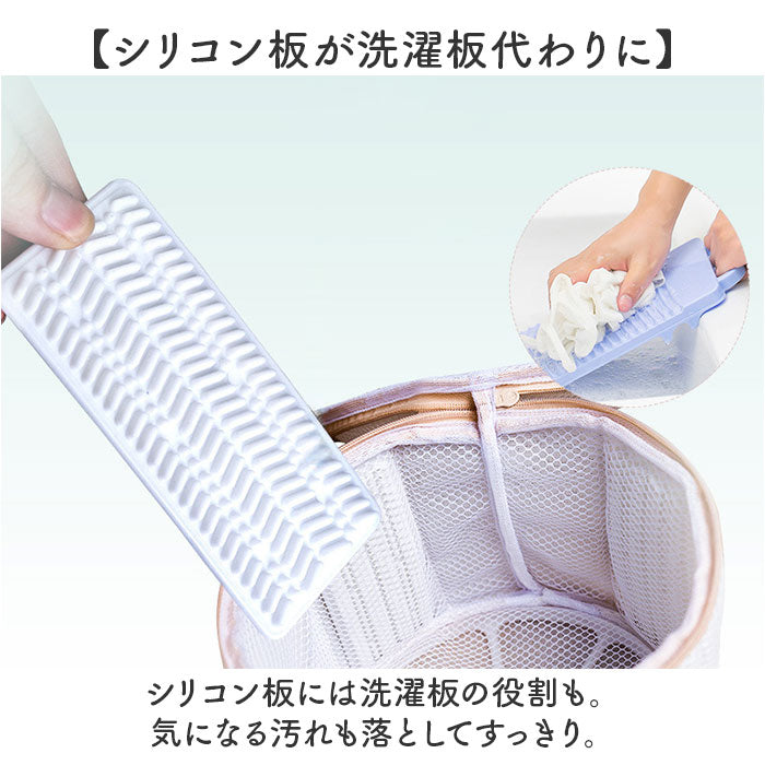・シリコン板には洗濯板の役割も。気になる汚れも落としてすっきり。