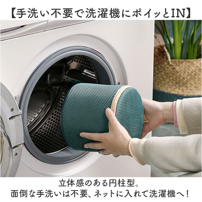 ・立体感のある円柱型。面倒な手洗いは不要、ネットに入れて洗濯機へ!