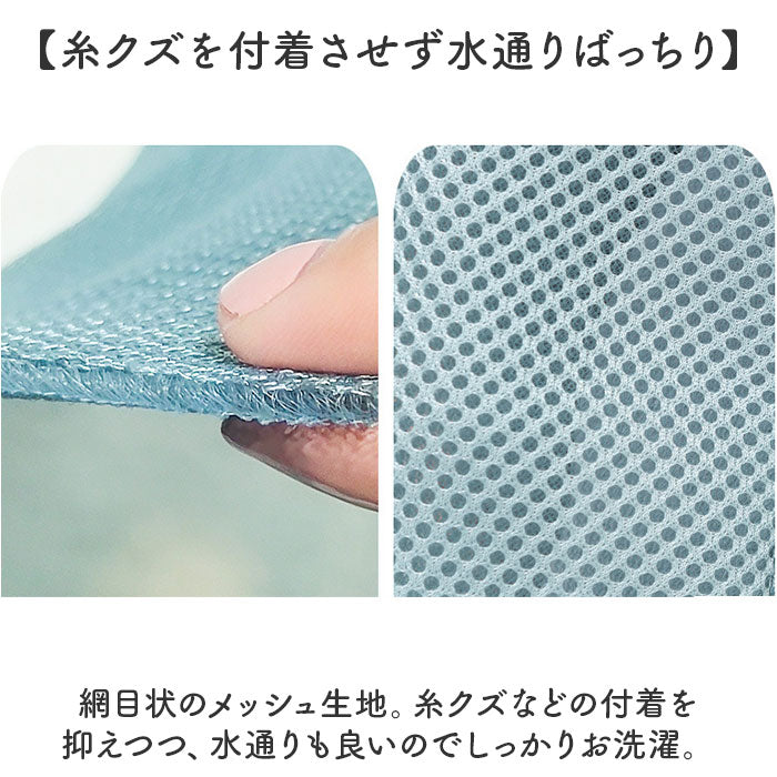 ・網目状のメッシュ生地。糸クズなどの付着を抑えつつ、水通りも良いのでしっかりお洗濯。