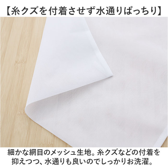・細かな網目のメッシュ生地。糸クズなどの付着を抑えつつ、水通りも良いのでしっかりお洗濯。