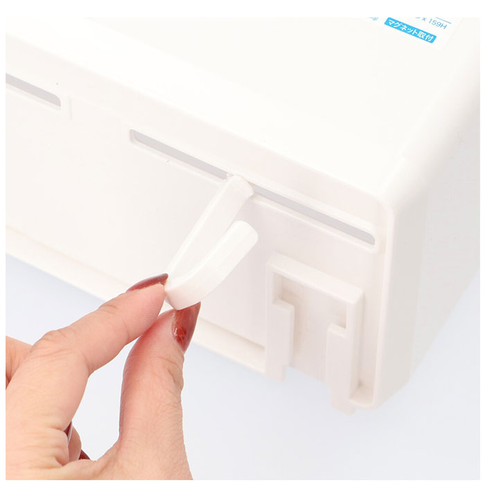 ・洗剤ボトルなど小物を洗濯機の前面や側面にスッキリ収納でき、取り出しもスムーズ!(※ドラム式タイプは側面のみ取り付け可能です。)