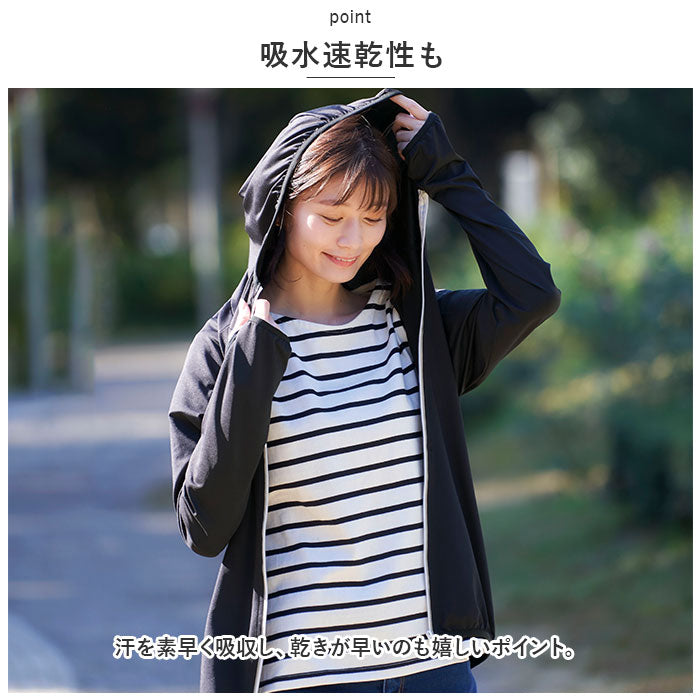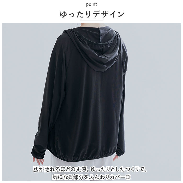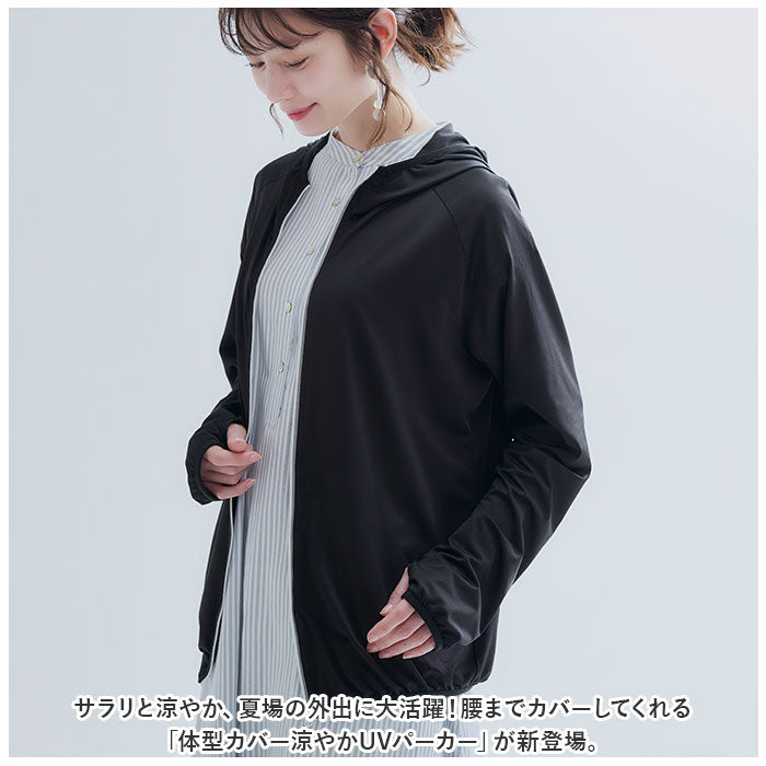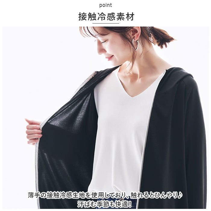 涼しい uv カット パーカー 通販 体型カバー涼やかUVパーカー レディース アウター トップス 羽織 薄手 接触冷感 ブラック 黒 体型カバー コンパクト 持ち運び 紫外線対策 ウォーキング