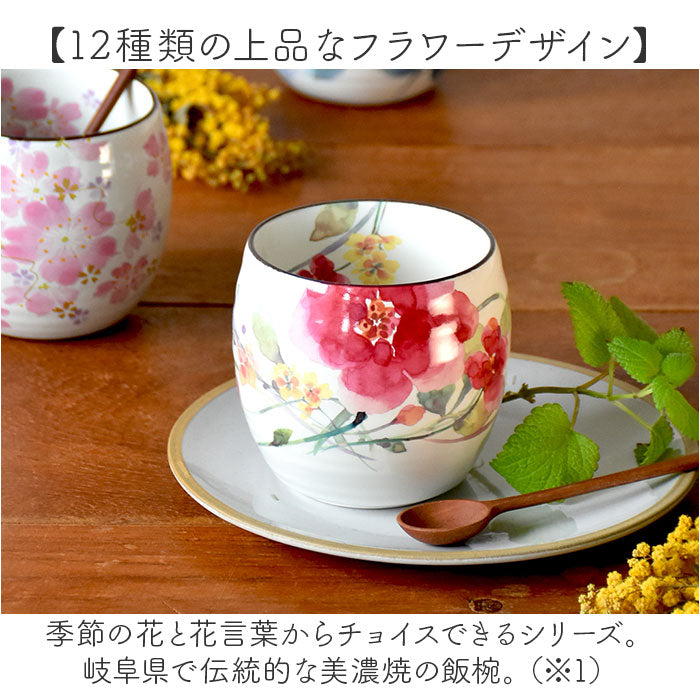・季節の花と花言葉からチョイスできるシリーズ。岐阜県で伝統的な美濃焼の飯椀。