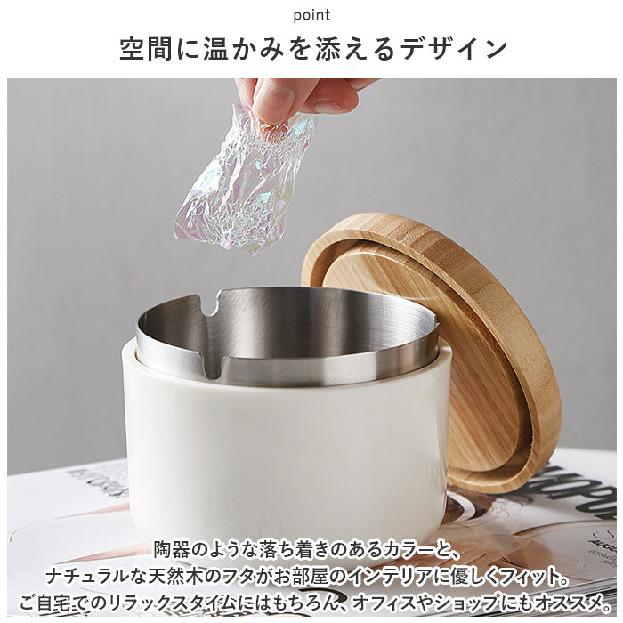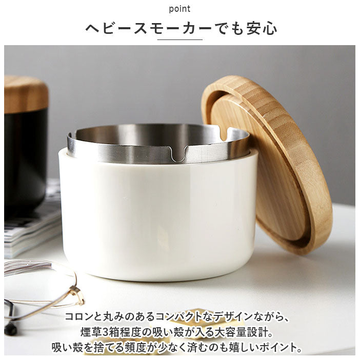 ・艶やかな光沢のある灰皿本体にナチュラルな天然木のフタを合わせた、安全に使える機能性と無駄のないシンプルなルックスを追求したアッシュトレイ。