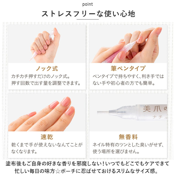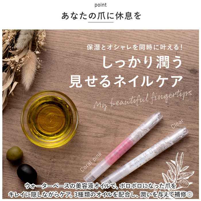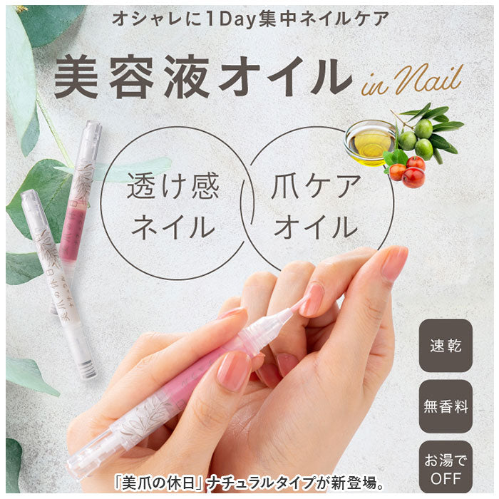 爪 美容液 通販 美爪の休日 ナチュラル ネイル美容液 美容液オイル ネイルケア オイル 補修 ネイル ケア マニキュア マニュキュア お湯でオフ 筆ペンタイプ ノック式 速乾 無香料 日本製