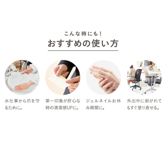 ・水仕事が手を守るため、ビジネスシーンで手元をキレイにしておきたい時に。ジェルネイルのお休み期間にも!外出先でもすぐに塗り直しOK♪