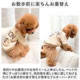 ・首回りやお腹周りの生地をぐーんと伸ばしたら、ペットの頭にすっぽりと被せて、両前脚を優しく袖に通してあげるだけ!お散歩前の着せ替えが簡単なプルオーバータイプ。