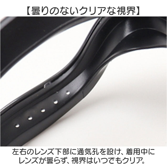 ・左右のレンズ下部に通気孔を設け、着用中にレンズが曇らず、視界はいつでもクリア。