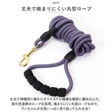 ・丈夫で伸縮性に優れたポリエステル繊維を緻密に編み込んだ、耐久性抜群のロープを採用。絡まりにくい丸型ロープなので、ワンちゃんが元気いっぱい走り回っても大丈夫!