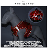 ・ハーネス生地全体をリフレクター素材のラインで縁取り、両肩にも長方形のリフレクターテープを配置。自動車のライトをキラリと反射するので、夜のお散歩でも安心。
