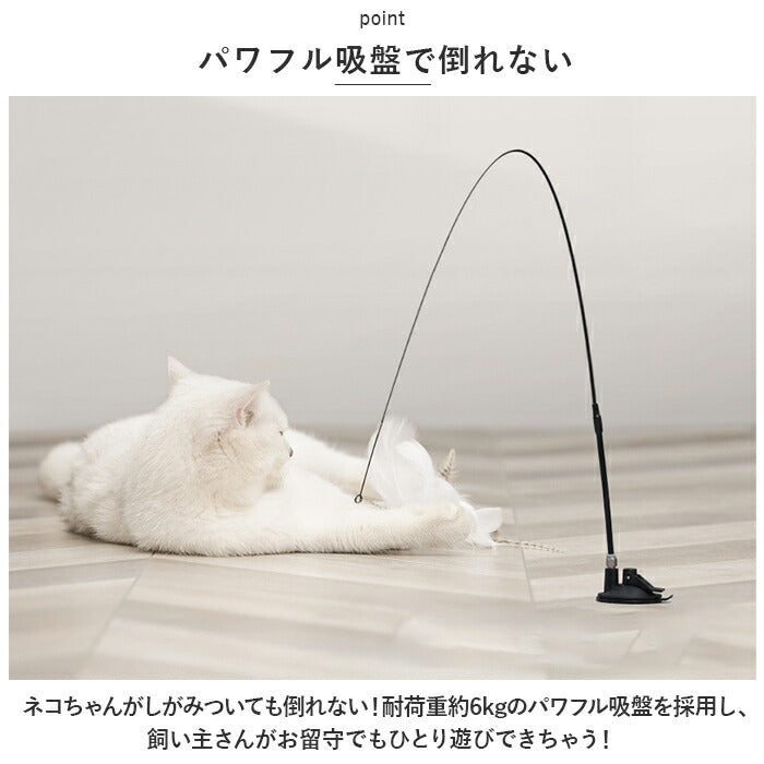 ・吸盤を使わずワイヤーロッドを手に持って、普通の猫じゃらしおもちゃとしても使える2WAYタイプ。普段はお留守にしがちで、ネコちゃんと遊びながらスキンシップを図りたい飼い主さんにオススメ。