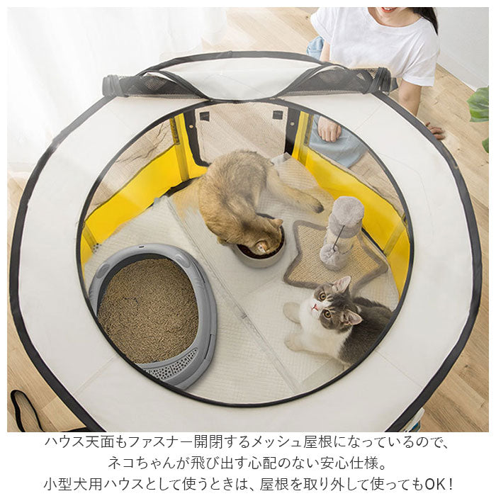 ・ハウス天面もファスナー開閉するメッシュ屋根になっているので、ネコちゃんが飛び出す心配のない安心仕様。小型犬用ハウスとして使うときは、屋根を取り外して使ってもOK!