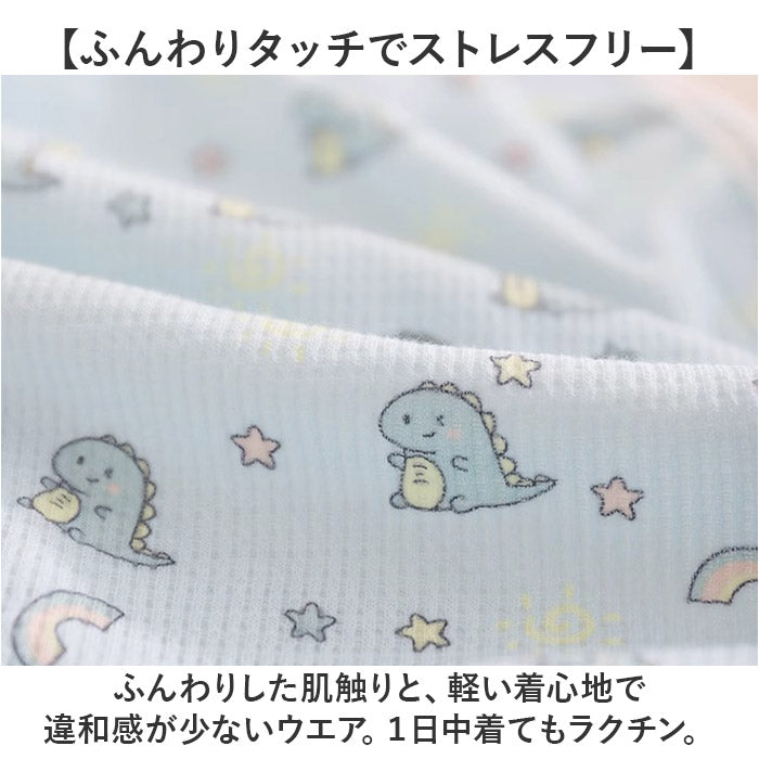 ・ふんわりした肌触りと、軽い着心地で違和感が少ないウエア。1日中着てもラクチン。