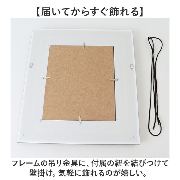・フレームの吊り金具に、付属の紐を結びつけて壁掛け。