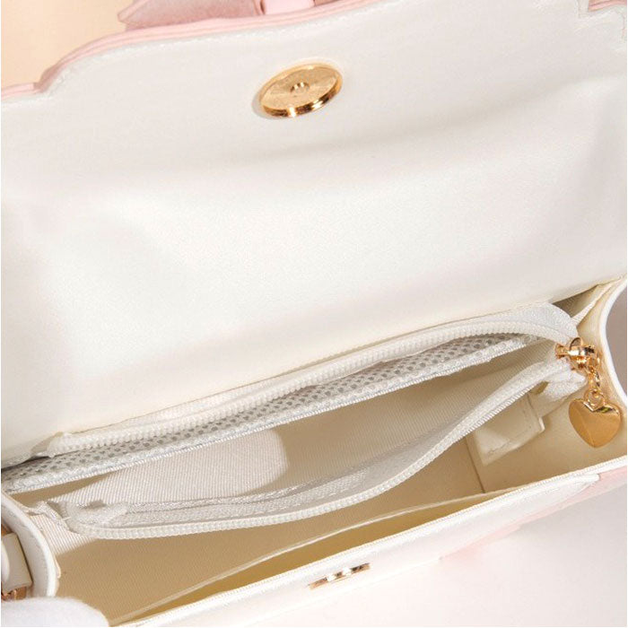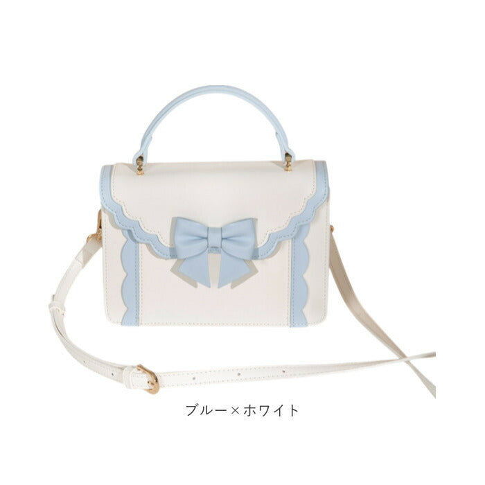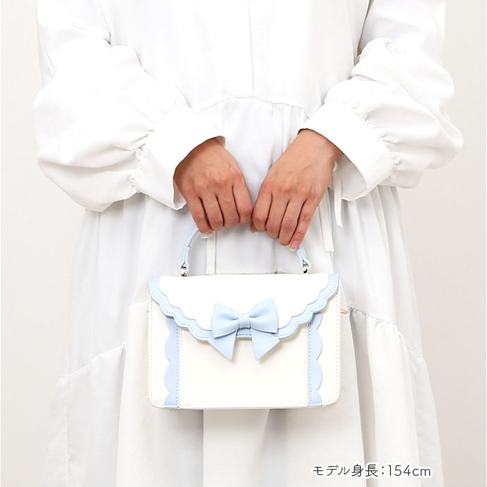 ・レザー調素材にリボンとハートのモチーフをプラス。バイカラーがコーデのアクセントにも◎