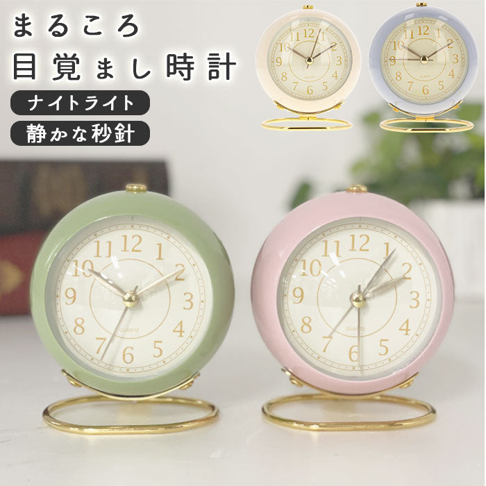 目覚まし時計 おしゃれ 通販 まるころ目覚まし時計 まるころ時計 置き時計 アラームクロック アナログ ナイトライト レトロ アンティーク 北欧 韓国風 ラウンド型 インテリア 静音 卓上 コンパクト おしゃれ かわいい キュート リビング