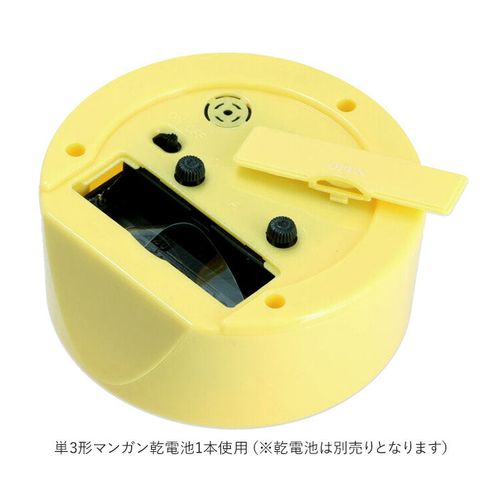 ・単3形マンガン乾電池1本使用。時計の裏面で時間調節やアラーム設定ができるシンプルな作り。(※乾電池は別売りとなります。)