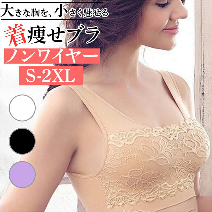 着痩せ ブラジャー ノンワイヤー 通販 着痩せブラ 補正下着 ノンワイヤーブラ ノンワイヤーブラジャー ブラジャー ブラ 下着 インナー ワイヤレス 大きいサイズ 伸縮性 大きな胸 レース