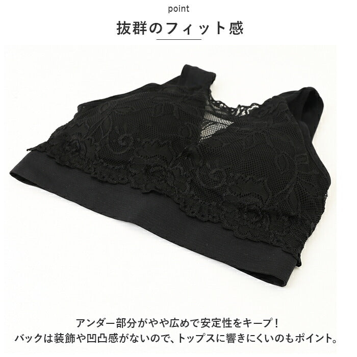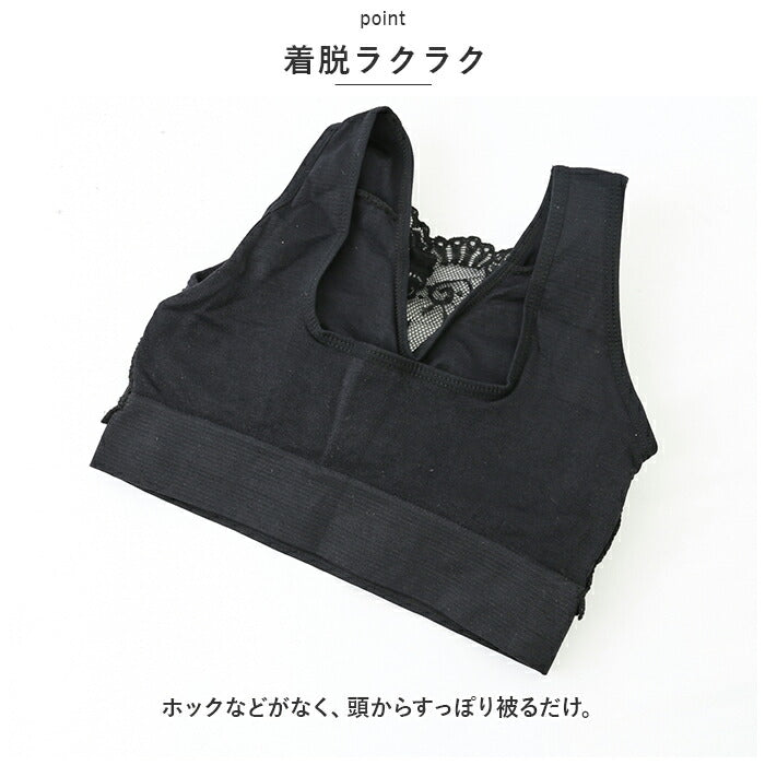 ・スポーツブラのような機能性ながら、フロントにレース素材を重ねた女性らしいデザイン♪デイリー使いにおすすめ。
