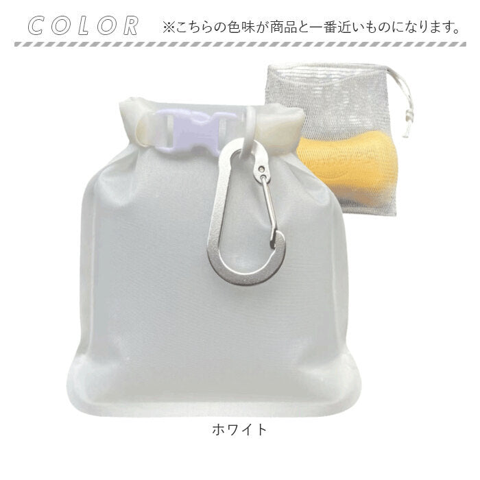 ・泡立てネットごと袋にIN。使った後は折りたたんでバックルでしっかり密閉。