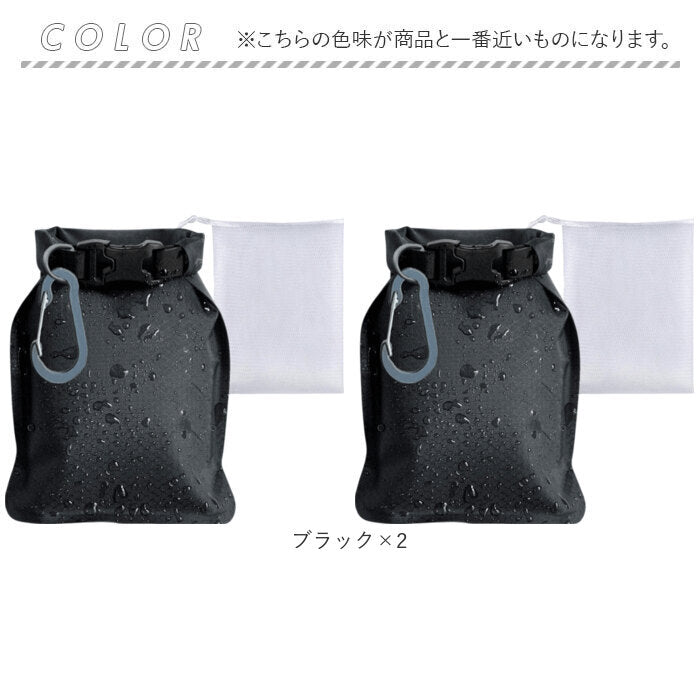 ・濡れてもすぐ拭ける撥水生地。スパバッグやリュックにパチッと装着OK。