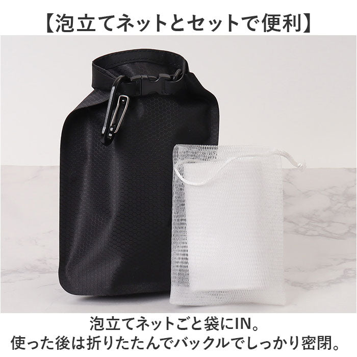 ・泡立てネットごと袋にIN。使った後は折りたたんでバックルでしっかり密閉。