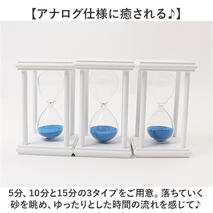 10分と15分の2タイプをご用意。落ちていく砂を眺め、ゆったりとした時間の流れを感じて♪