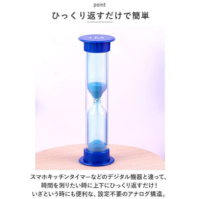 ・スマホやキッチンタイマーなどのデジタル機器と違って、時間を測りたい時に上下にひっくり返すだけ!いざという時にも便利な、設定不要のアナログ構造。
