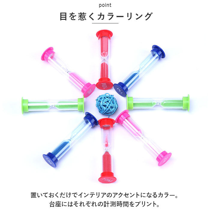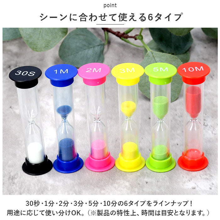・30秒・1分・2分・3分・5分・10分の6タイプをラインナップ!用途に応じて使い分けOK。(※製品の特性上、時間は目安となります。)