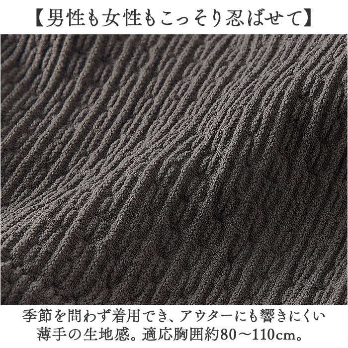 ・季節を問わず着用でき、アウターにも響きにくい薄手の生地感。適応胸囲約80〜110cm。