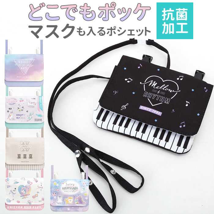 ・スナップボタン式のポケットには子供用マスクがすっぽり収納可能。裏面にはティッシュポケット付き。