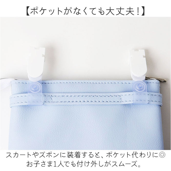 ・スカートやズボンに装着すると、ポケット代わりに◎お子さま1人でも付け外しがスムーズ。