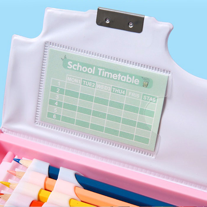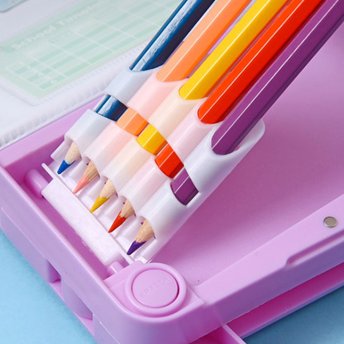 ・鉛筆ホルダー、消しゴムスペース、裏面収納など、所定の場所があるからお片付けも楽々♪