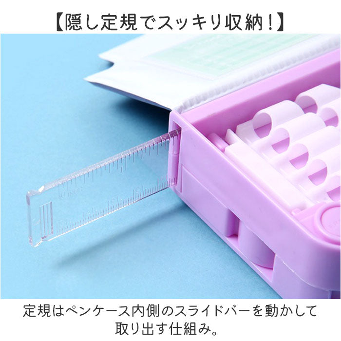 ・定規はペンケース内側のスライドバーを動かして取り出す仕組み。