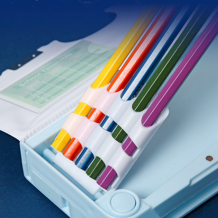 ・鉛筆ホルダーや消しゴムスペースなど所定の場所があるからお片付けも楽々♪