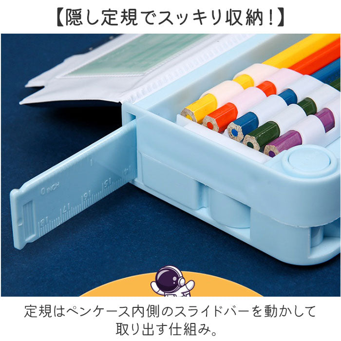 ・定規はペンケース内側のスライドバーを動かして取り出す仕組み。