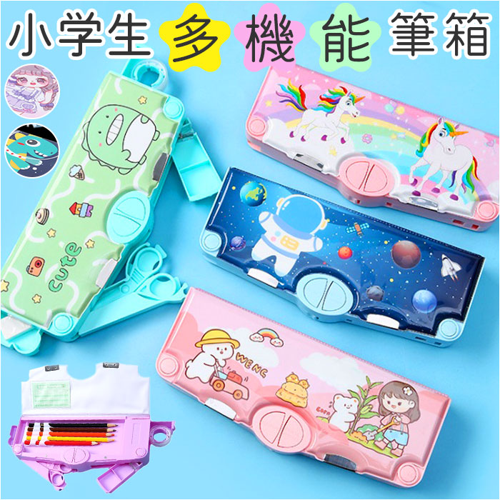 筆箱 多機能 小学生 通販 ペンケース 筆入れ ふでいれ ペン入れ 女の子 男の子 片面 鉛筆削り付き ハサミ 箱型 小学校 入学準備 新入学 進級 かわいい 可愛い 文具 文房具 入学祝い