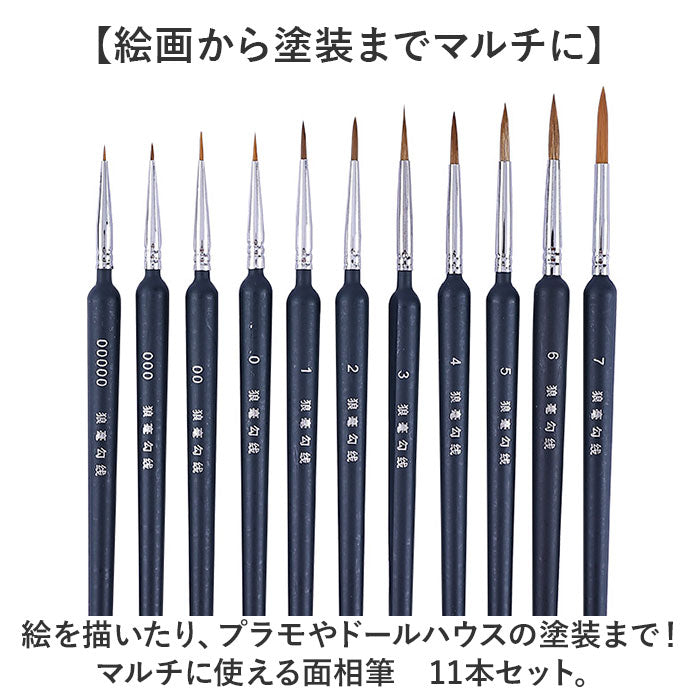 ・絵を描いたり、プラモやドールハウスの塗装まで!マルチに使える面相筆 11本セット。