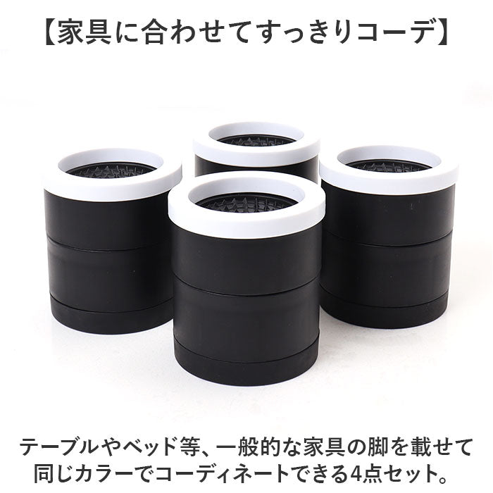 ・テーブルやベッド等、一般的な家具の脚を載せて同じカラーでコーディネートできる4点セット。