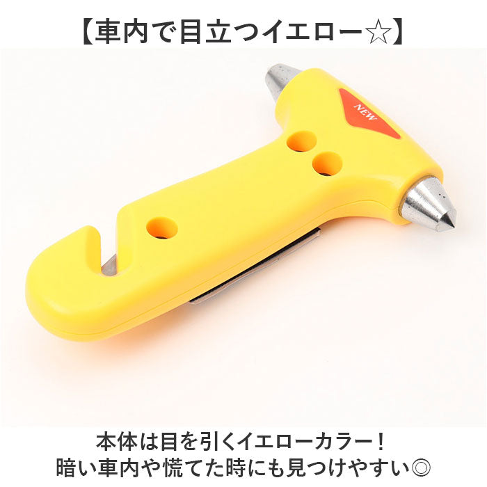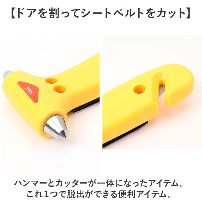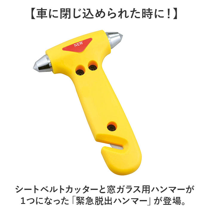 ・シートベルトカッターと窓ガラス用ハンマーが1つになった「緊急脱出ハンマー」が登場。