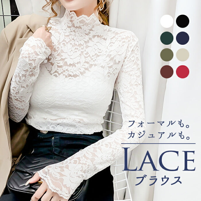 総レース ブラウス 通販 シースルーブラウス 長袖ブラウス レースブラウスレディース レディース 女性 トップス ハイネックブラウス レーストップス 長袖トップスおしゃれ