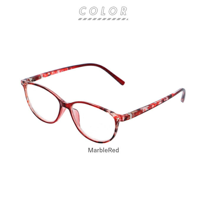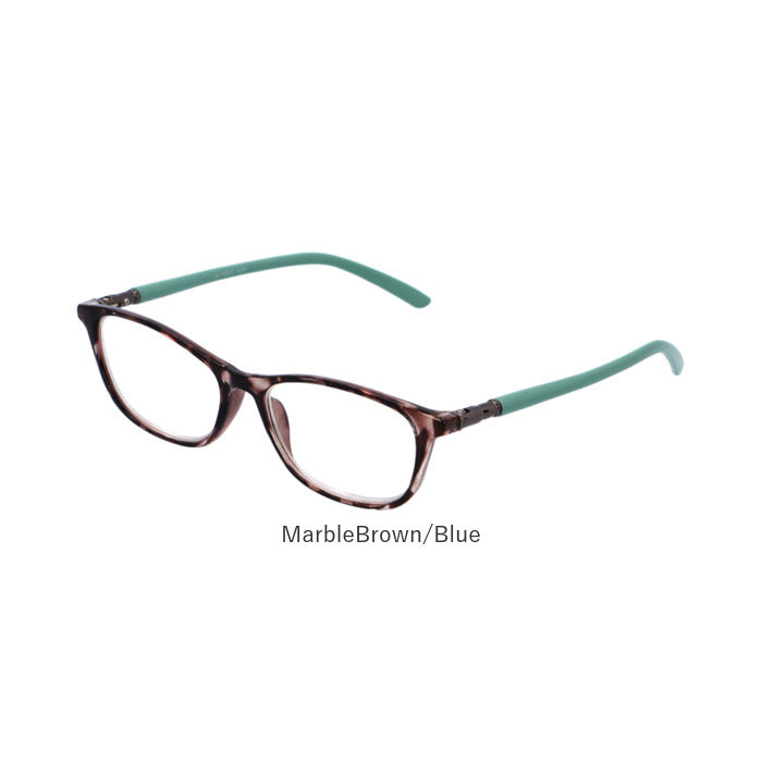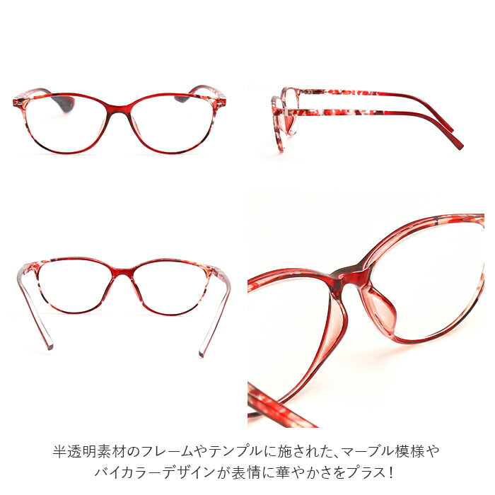 ・半透明素材のフレームやテンプルに施された、マーブル模様やバイカラーデザインが表情に華やかさをプラス!ほのかに遊び心を感じさせるデザインが魅力。