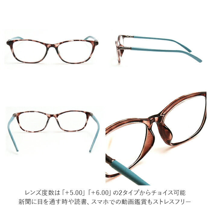 ・レンズ度数は「+5.00」「+6.00」の2タイプからチョイス可能。新聞に目を通す時や読書、スマホでの動画鑑賞もストレスフリー。