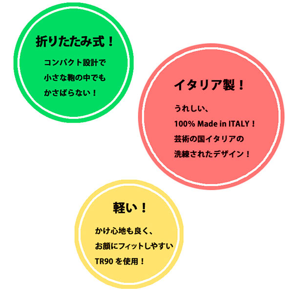 [全素材]レンズ:アクリル樹脂、 つる:トリアセテート、ケース:ポリプロピレン