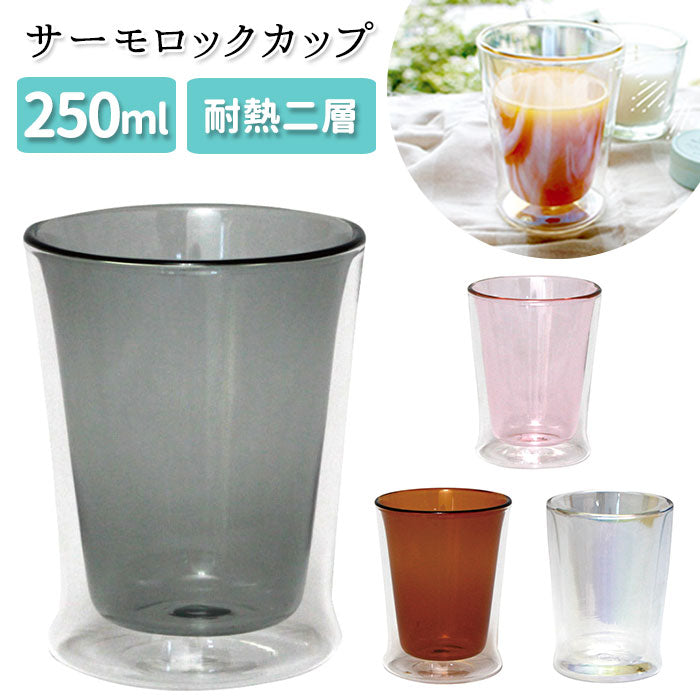 耐熱ガラス コップ 二重 通販 二重グラス ガラスコップ おしゃれ かわいい 色付き 耐熱グラス 耐熱二層ガラス ニュイ nuit サーモロックカップ 250ml ピンク アンバー グレー ラスター グラス 洋食器 キッチン用品