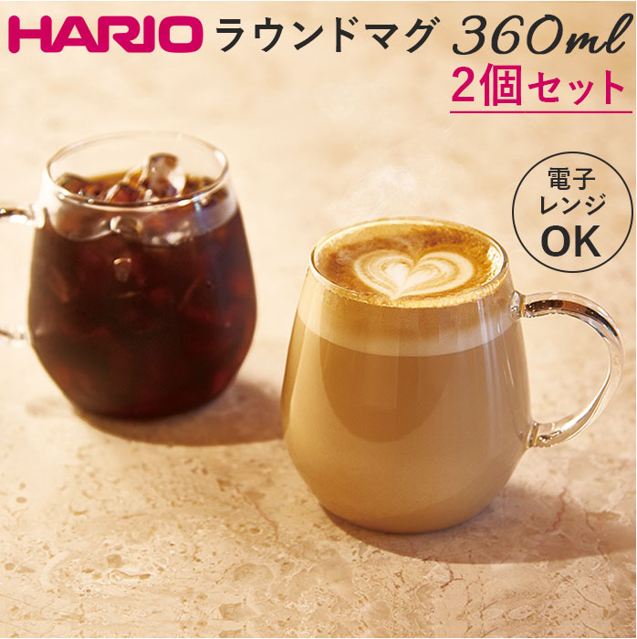 耐熱ガラス マグカップ ハリオ 2個セット 通販 HARIO 3RDM-1824 耐熱マグカップ 耐熱 ガラス ガラス製 マグ カップ 透明 おしゃれ ラウンドマグ 電子レンジ対応 食洗機対応 カフェグッズ
