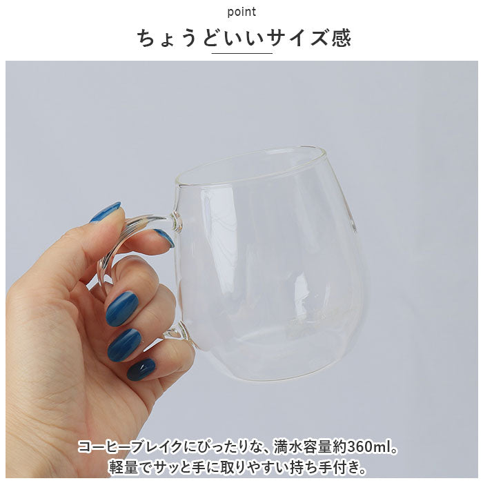 ・コーヒーブレイクにぴったりな、満水容量約360ml。軽量でサッと手に取りやすい持ち手付き。