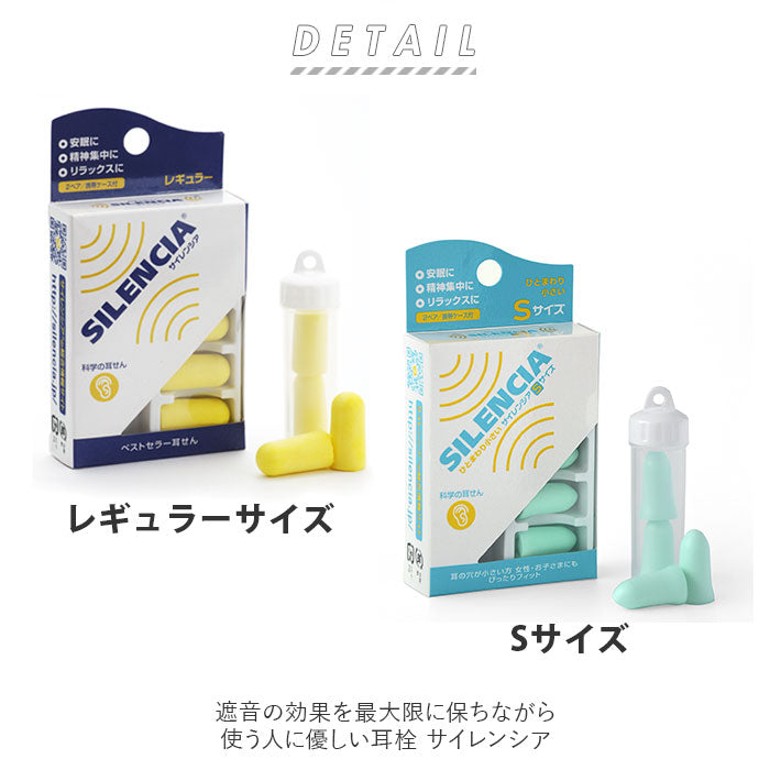 耳栓 睡眠 遮音 通販 SILENCIA サイレンシア 防音 安眠 集中 機内 車内 自宅 学習 旅行 レギュラー 大人用 Sサイズ 小さめ 女性用 レディース 子供用 キッズ イヤープラグ イヤープラグ 機内リラックスグッズ 旅行用品